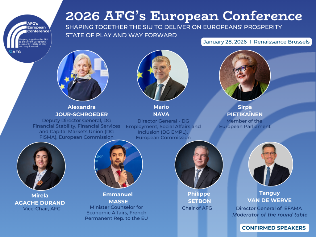 L’AFG a le plaisir de vous inviter à sa conférence européenne annuelle à Bruxelles (en anglais), cette année sur le thème de « Façonner ensemble l’Union de l’épargne et des investissements pour assurer la prospérité des Européens – État des lieux et perspectives d’avenir ».